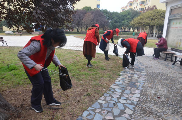 10日下午,天空下起淅淅沥沥的小雨,虽然天公不作美,依然阻挡不了志愿者们走进社区服务的热情。志愿者们分成两组进行志愿活动。一组志愿者手持扫帚、灰斗、夹子等工具,对社区文化广场和街道两侧的落叶、杂物、纸屑等进行了全面清扫。志愿者们不怕苦,不怕脏,坚持“我奉献、我快乐”的服务理念,让社区环境变得更美了。另一组志愿者带着《鹤壁市市民文明公约》、《社会主义核心价值观》等宣传单,走进社区居民中间,为他们普及城市文明创建知识,宣传创建文明城市的精神。