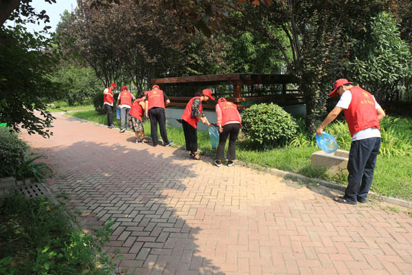 当日,大家顶着烈日酷暑,身着志愿者服装,党员佩戴党徽,拿着卫生工具来到天馨中央公园社区开展清洁志愿服务,捡拾小区花坛等公共区域的垃圾,并向社区居民宣传夏日保持环境清洁、防治蚊虫等生活小百科,推动形成社区居民人人爱护环境的文明风尚。