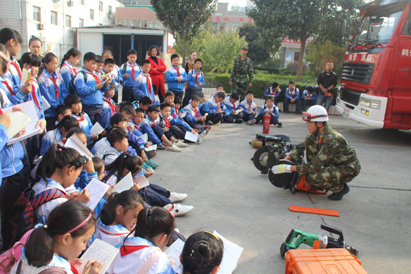 为丰富学生的消防知识,提高学生安全意识,10月24日下午,嵩山小学五四中队在辅导员的带领下,到淇滨区消防支队参加了消防安全体验活动。